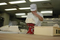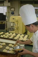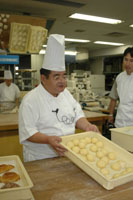 廣瀬社長の大きな手の中であっという間に、パンが出来上がる。餡やクリームの入れ方、生地の扱いなどポイントが