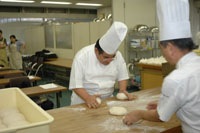 は、生徒の質問に応えたり、午後の準備をしたりと大変忙しそうでした。午後は13:30から開始。食パンの成形、
