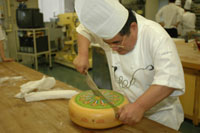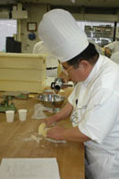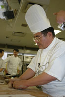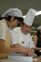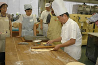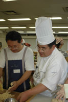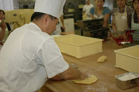 生徒さんの熱いまなざしの中、講習会は進んでいく 日本製粉 三嶋様からご挨拶   日本製粉のスタッフの手で、