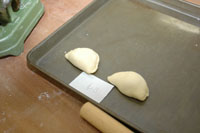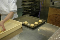常温解凍後、天板へそっと移します  さあ 窯入れです