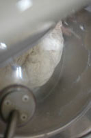 ( 一次醗酵へ、2時間半の時間をとりいよいよ本捏ねへ。