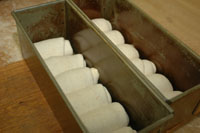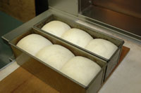 国産小麦、天然酵母のみで生成した生地、ホイロ完了後(成形後、焼成直前状態)