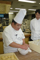 ない技を廣瀬社長から直伝で学ぶという、またとない時間となりました。次に、あんぱん、クリームパンの成形へ、