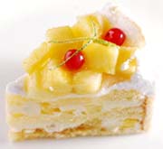 カラエブ ¥360 コアントローとホワイトラムを使っているので、すっきりとした味わい。まわりはメレンゲでデコレーションされココナッツが付けられています。パッションフルーツの酸味がアクセントとなって、カスタードクリーム+バタークリームのコクを一層ひきたてている感じ。 |