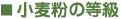 ![]() 小麦の成分や栄養などについて勉強しましょう。 ![]() 「胚乳の硬さ」「種粒の色」「栽培時期」などに関して性質の異なる、たくさんの「品種」が存在します。 ![]() タンパク質の含有量の違いで分類されます。 ![]() 灰分の割合で分類されます。 ![]() 製品の特長をよく考えて、目的に合った小麦粉を選びましょう。 ![]() 現在日本で作られている小麦の種類は、約110種ともいわれています。 ![]() 各製粉会社がだしている製品を表にまとめました。 |