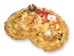 それは、自他ともに認めるバター好き・スタッフYの一言から始まりました。 「せっかくのパーティーだし、『イエンセン』のカイングラを頼みましょうよ〜!」 とさっそくお店に予約の電話。しかし… 「料理を食べた後はクリスマスケーキもあるのに、カイングラまで食べきれないんじゃない!?」 と突如沸きあがった心配の声。それなら、と 「じゃあ、ランチにみんなで食べましょうよ!」 クリスマスパーティーの開始は18時頃を予定。でも、やれ「パーティーだ」やれ「イベントだ」というと、とことん楽しんじゃうのがパナデリア。こうしてお昼からパナデリアのクリスマスパーティーは始まったのでした。食べたことのある方ならお分かりでしょうが、ゆうに10人前はあるであろう大きなデニッシュを目の前に、それまで慌しく働いていたスタッフたちのテンションは急上昇!さっくりと軽いデニッシュ生地にたっぷりのクリームとアーモンドスライス。バターの香りとアーモンドの香ばしい香りに包まれ、カットしてもまだ大きなカイングラにかぶりつくみんなの顔は幸せそのもの! |