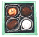 葉っぱの形をしたミントチョコやハート型のレーズンチョコが人気。