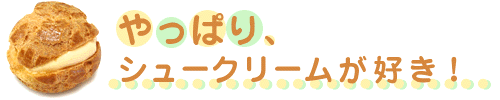 ![]() フランス語の「シュー」と英語の「クリーム」をくっつけた和製外国語で、正確にはフランス語で「シュー・ア・ラ・クレーム」。シューはキャベツのことで、膨らんで焼けた形がキャベツのようなので、その名がついた。シュー生地の発祥はさだかではないが、小麦粉とバターを混ぜてつくる「ルー」に牛乳と卵を加えて焼いた料理がそのルーツ、という説が一般的だそうである。 |