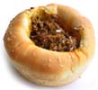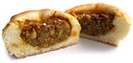 ひよこ豆のカレーパン 160円 ブイヨンの効いたひき肉とひよこ豆のカレーはフワフワで柔らかいポット型パンと相性抜群。このパン、焼いてから中をくりぬくのではなく、元からこのカタチに成形、焼き上げている。 |