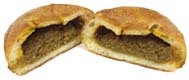 ビーフカレーパン 140円 商品名に偽りナシ、と叫んでしまったビーフカレーパン。割ったとたんによく煮込んで崩れそうになっているビーフがごろん、と出てきて思わず感激。焼き上がりは10:30と12:00の2回。 |