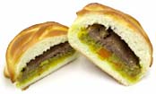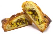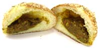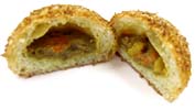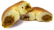 ブッフ・ド・ラング・キュリー 280円 このパン、以前はバターライス入りだったが今回はサフランライスで登場。食感、味とも和風イメージが増した。具の牛タンは柔らかくパン生地と一緒に口の中でさっくりと噛み切れる。 |