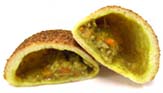パンオキュリー 200円 ココナッツの風味がふわっとただよう生地のなかにはトロッとしたひき肉と野菜入りのあまり辛くはないカレー。パン生地がフランスパンの薄いクラストのようでパリパリと美味しい。 |