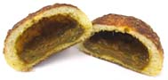 カレー風味コーンパン 180円 カレーパンというより「カレー風味のパン」。フィリングはカレー味のコーンと牛肉、それがバターの風味がよいサクサクのパイに入っている。ちなみにパイ生地にはチーズがついている。 |
