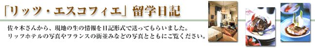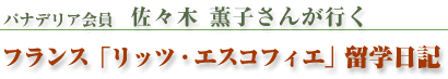 ![]() パナデリア会員の佐々木薫子さんが9/10から12/14まで『リッツ・エスコフィエ』で製パンと製菓の全コースを受講するため、フランスに渡りました。パナデリア会員の皆さんの中にも留学情報に興味のある方がたくさんいるだろう・・ということで、佐々木さんが現地から生の情報を日記形式で送ってくれました。 |