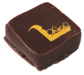 ヴァローナのグアナラを使ったカカオ分の高いビターチョコレートのコーティング。表面に店のロゴ有り。上掛けは薄く、艶もあり、丁寧な仕上げ。