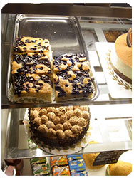 | 同店の冷蔵ケース上のブルーベリーを焼きこんだシンプルなケーキも、あちこちの店で見られる定番中の定番 |