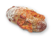 セーグルフロマージュ \150 セーグルタイプのもっちりとした生地にチーズがたっぷりと。表面のチーズがカリッと香ばしく焼けた部分と、内側のやわらかい部分とのコントラストが魅力。癖のないオールマイティなタイプです。 |