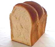 食パン(エシュレバターと生クリーム入り) ¥450(1.5斤) エシレバターの香りと生クリームの香りがとてもいい。トーストするとさらにひきたつ感じがする。後味に残るヨーグルトのような風味とほんのりした塩気と甘さのバランスがいい。 |