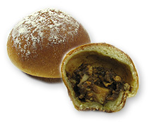きのこのカレー \200 見た目も「きのこ」を模した、可愛らしいカレーパン。薄めの柔らかな生地には、肉の味がギュッと詰まったカレーが。甘みとスパイシーさが共存し、こぶりながら食べ応えがあります。 |