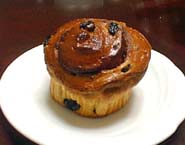 シナモンレーズン ¥130 とても弾力がある、もっちり、しっとりしたパン生地の中に、シナモンとレーズンが巻き込まれている。 シナモンとレーズンの甘みが引き立ち、香りも良く、美味しい。 |