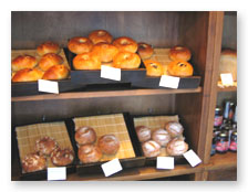 江古田にある「ひね」は、お客様が二人入ったら身動きがとれないほどの小さいお店。歩いていてもつい見過ごしてしまいそうですが、天然酵母の雑穀パンと書かれたかわいらしい看板を目印に、ぜひ出かけてみてください。パンだけでなく、お店全体がいかにも手作りという暖かい雰囲気に包まれています。「アンジェリーナ」を出たという女性が一人でやっているこのお店、11時の開店とともにお客様が続々と・・・。午後の早い時間にはパンが売切れてしまうこともあるようです。絶対に食べたいと思ったら、開店時間をめざしていかないと、悲しい思いをしますよ。気をつけてくださいね。ちなみにパナデリアはここのパンをいただいて、何故か福岡の「即興詩人」の草柳さんのパンを思い出して、とっても懐かしくなりました。(2004.8) |