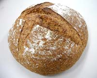 パン・ド・カンパーニュ (500g) 400円 石臼挽き全粒粉60%のずっしりとしたカンパーニュ。しっかり焼き込んであるのでクラストが香ばしく、生地には国産小麦の風味が生きている。滋味のある酸味が意外と素朴。 |
