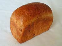 レーズン種の天然酵母のパン \1.7/g 甘めの生地にしっとりしたレースンとくるみが入っている。レーズンを5日間常温で自然発酵させた酵母を使って作られたパン。生地がどっしりと重めのわりには、クラストが薄いので食べやすい。計り売りで買えます。 |