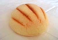 メロンパン \120 まわりのビスケット生地が薄いので、全体的にパクッと食べられる。ビスケット生地とパン生地に一体感がある。中の生地はちょっともっちりとした感じ。香りがよい。 |