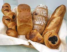 | ロイヤルパークホテルは、箱崎のインターシティに程近いせいか、外国人の姿も大変多く見られます。半蔵門線の水天宮の駅から直結してホテルに入る事ができ、とても便利で、かつ国際的な空気が漂う空間です。このホテルの中にあるベーカリーが「ロイヤルデリカ」。ここの人気商品は、高めの温度で焼く香ばしいバゲット、クルミが入ったドイツの田舎パン・グルノブロア。予約をして買いに行った方がよいでしょう。 (99年9月) |