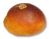 ブリオッシュ \150 バターたっぷりというよりは、わりとさっぱりめのブリオッシュ。ラムレーズンの味わいがほろっと効いています。トッピングのざらめ糖のほのかな甘さがいいアクセントに。 |