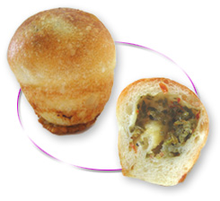 ハラペーニョパン \130 見た目はころっとかわいいのに、なんと中には辛い唐辛子ハラペーニョのオイル漬け、チーズが入っています。もちもちっとした生地に、がつんとした辛さが気持ちいいほど。イタリア料理を食べたような後味です。 |