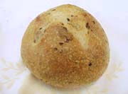 ヴィタル(カンパーニュ) \800 お店の名前をそのまま使ったパンは、くるみとレーズンがたっぷり生地に練り込まれています。香りは少ないけれど、噛み締めていくうちに、口に広がっていく滋味。大型なだけにじっくりと焼き込んであり、底の香ばしさは格別です。 |