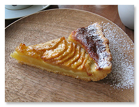 洋ナシのタルト \420 タルト生地からはバターの香り。クレームダマンドからはアーモンドの香り。そして洋ナシからは洋ナシの香りが芳醇に。素材の良さ、フレッシュさが活きたタルトです。サクホロ、ふわり・・・素朴で優しい口当たりにも心が癒されます。 |