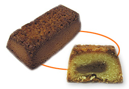 パヴェ・フロマージュ \200 フタを空けた瞬間から、甘く濃厚なフロマージュの薫りが鼻を打つ。サクッパリッと軽く仕上がったフィユタージュは、香ばしさと同時にバターがするすると溶け出します。口の中には、バターの旨みとチーズの風味の長い長い余韻が。ひとかけらでも満足できそうな、存在感のある一品。 |