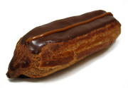 エクレール・オ・ショコラ \320 しっかり焼きこんだシュー生地と、パティシエールが多めでクリーミーだが、苦味の効いたクリームのバランスが良い。生地の塩けとかなり効かせてあるリキュールも大人っぽい味わいを生み出しています。 |