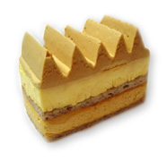 キャラメルバニーユ \360 スタイリッシュな形が目を引いた一品。一番上はキャラメルクリームになっていて、キャラメルのほろ苦さが生クリームの風味でまろやかに変身。バニラムースはまるでバニラアイスのような味わいです。 |