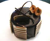 マルガーシュ ¥280 ウィーン風のザッハの上掛けのチョコレートのお砂糖のしゃりしゃりした感じではなくて、上をなめらかなチョコレートでグラッサージュしたフランス風ザッハ。間にはガナッシュクリームをはさんであります。 |