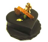 ハートのショコラ ¥380 ガトーショコラとガナッシュの中間くらいの、ムッチリ、しっとりとした食感。オレンジの香りが隠し味になっています。底のサブレ・オ・ショコラがサクサクとごく軽く、タルトとはまた違うおいしさです。 |