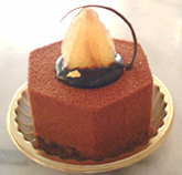 アルデショワ ¥400 カラメル風味のムースショコラとマロンのブリュレ、下の生地はコクのあるダックワーズ生地です。上にトッピングされているナポリ産のマロンを使ったというマロングラッセは、ラム酒の香りがよく美味しい。それぞれの素材の良さが引き立った美味しさです。 |