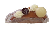フランベ \370 アーモンドビスキュイとオレンジカスタードのムース。層は美しく、ケーキの底には薄い板状のチョコレートが敷かれている。やさしいチョコの味とほのかなオレンジのさわやかさ。 |