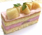 | 2001年4月、靖国通り沿いに、大きなガラス窓の、まるでお店全体がショーケースのような明るいお菓子屋さんがオープンしました。そこが元、銀座和光の『ルショワ』で腕を振るっていた堀江新シェフのお店『ラ・ヴィ・ドゥース』です。堀江シェフは数々のコンクールでも優秀な成績をおさめた経験をもつ実力派。"新しい日常生活におけるケーキをキーワードに、時代の変化に対応するテイストを創造し、日常生活にやさしいゆとりを生む「小さな贅沢」を願い、店名にもなっている『ラ・ヴィ・ドゥース』(甘い生活)をはじめた"とのこと。厳選された素材を使い生み出されたお菓子は、味わいはもちろんのこと、見た目からも私たちを楽しませてくれます。(2001年8月) |