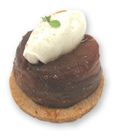 タルトタタン \473 苦いほどキャラメリゼされたリンゴは、酸味もしっかりとしてメリハリのある美味しさ。トップの生クリームのミルキーさが加わると、ほどよい苦みに変わります。底に敷かれたクッキー生地は、サクサクっとした食感で、隠し味的にホワイトチョコレートが塗られています。 |