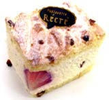 リビエラ ¥380 フランボワーズの濃厚なムースとジャム。底にフレッシュレモンのジュレが敷きこまれ、ほのかな酸味とさっぱり感が口の中に広がります。トッピングされているフルーツも鮮度が良くて美味しい。 |