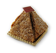 キャラメルのミルフィーユ ¥420 ピラミッド型が、なんともユニーク。フィユタージュは、しっかりと火が通り、ザクザクとした食感。塩味も効いて、センターの濃厚なキャラメルクリームの味わいを引き立てています。キャラメルにはさらにナッツがゴロゴロ。見た目はスマートですが、力強い味わいのミルフィーユです。 |
