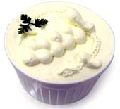 ムラングカフェ ¥350 コーヒーフレーバーの軽い軽いメレンゲ菓子です。芳ばしいコーヒーの香りを残しながら、綿あめのようにスーっと溶けていきます。 |