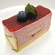 フランボワーズ 300円 やさしいフランボワーズのムース。上のソースはかなり酸味がきいています。一緒に食べると口の中で調和され、甘酸っぱさが広がります。 |