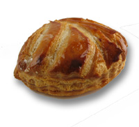 ¥380 オレンジの花の香りがふんわり。しかも、素材の味となじんでいるせいか、嫌味がなく、効かせかたのひきが見事。バリッとしたパイの中のアーモンドのコクと味わいのしっかりした、でも食感がソフトなクレームダマンドがたっぷり。まるで薄い紙を重ねたようなパリパリっとしたパイ生地も楽しい。 |