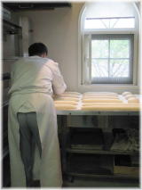 2002年の5月に店をオープンしました。北海道を選んだのは、妻の実家があるという理由もありますが、何よりも何度か遊びに来るうちに、北海道がとても気に入ったからなんです < パン作りは、中学校の頃からやっていました。実家("シャラント")でアルバイトを兼ねて父の手伝いをしていて、そのまま、気が付いたら自分もパン屋になっていたんです。その後、"アートコーヒー"に1年半、それから"タイユヴァン・ロブション"に入りました。"タイユヴァン・ロブション"ではハード系のパンを作ることが多かったように思います。 |