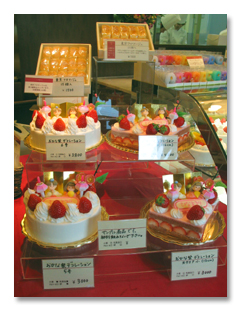 シャープに仕上げた大人向きのケーキも並ぶ |