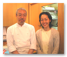 お店の商品のことをことについて伺うと。 「フランスと気候や素材のちがう日本ではフランスと同じお菓子はなかなか作れません。ですから、あえてフランス菓子店とは名乗らず、自分の納得のいくものだけを並べるようにしちえます。作ったものが気に入らないときは捨ててしまうこともあります。ちなみに、「ウマイなぁ」と思いながら自分の作ったお菓子を食べていますよ。」 「世間で美味しいと言われているお菓子を食べても、そう思えないことも多いんです。そんななか感動したのが、パリ「ジャン・ミエ」のシェフであるドゥニ・リュッフェルさんの作るお菓子。先輩にイル・プルー・シェル・ラ・セーヌの弓田さんを紹介され、弓田さんが主催するドゥニさんの第一回目講習会に出た時のことです。その時は、はっとしましたね。その時初めて「フランス菓子ってこういうものなんだなぁ」と思いました。それから講習会には毎回出席しています。店のお菓子の中にもそのルセットをそのまま使っているものもあります。気温や湿度、素材の状態などは、その時その時で違うので、いつも品質を同じように保てるよう、自分なりにいろいろ工夫しています」 |
